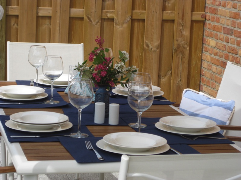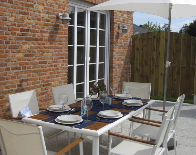 Tisch mit 6 Stühlen • Sonnenschirm • Grill